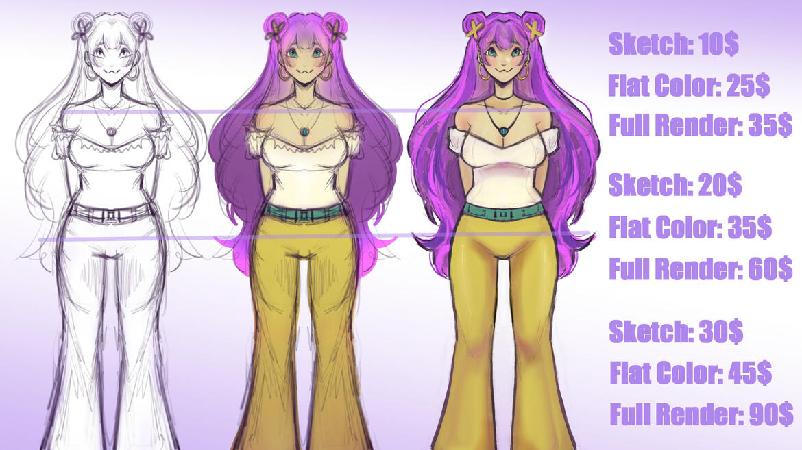 O cliente está autorizado a: Imprimir e usar a peça encomendada para uso pessoal; reclamar os direitos da(s) sua(s) personagem(ns) na peça, não a peça em si; Publicar a peça encomendada nas redes sociais, usar como foto de exibição em qualquer plataforma (o crédito é sempre apreciado e deixa-me feliz:D); usar a peça para uso comercial se o cliente tiver pago pelo uso comercial.
